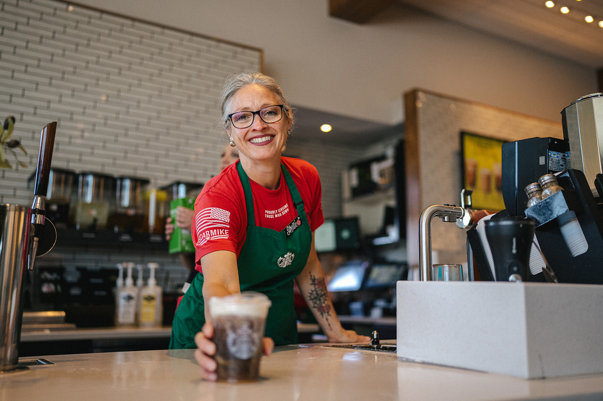 “As an Armed Forced Network (Starbucks employee resource group) member for six years, I’ve been granted the privilege and opportunity to share time with some of our country’s heroes. I learned and recognized how our Armed Forces members count on us, through care packages and notes while they serve or in partnership with organizations such as Wounded Warrior Project, that help improve Veterans’ way of living when they return. Our partnership with WWP has created space to live out this responsibility and in so many instances support Veterans with services they need.”