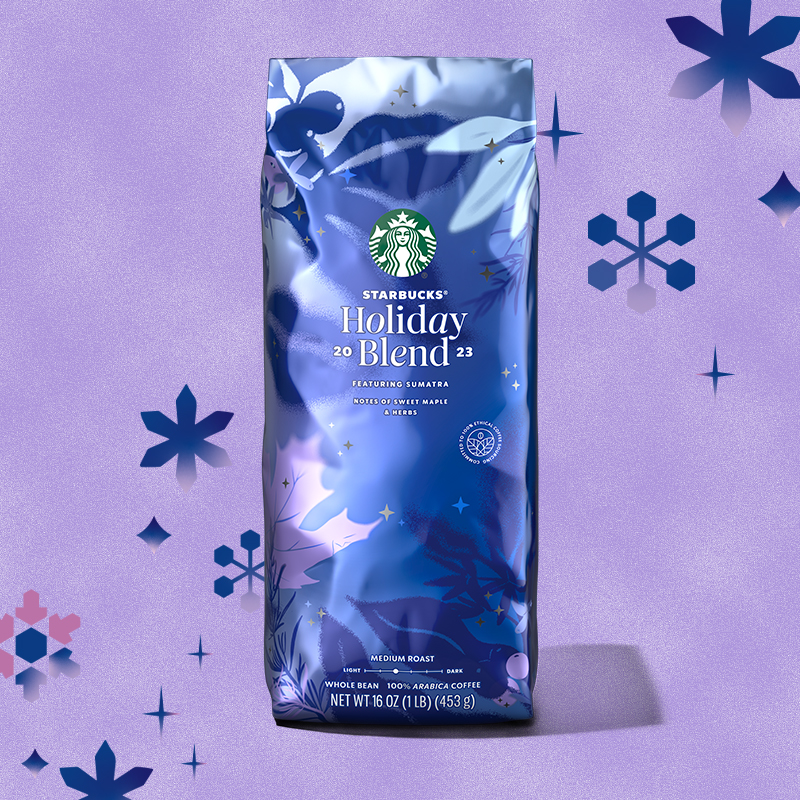 For those who love an elegantly balanced cup of coffee, Starbucks® Holiday Blend is just the right combination of sweet and toasty notes. This seasonal blend combines bright Latin American beans with rich Sumatran coffee – roasted to perfection. It features notes of sweet maple and herbs that balance the rich flavors of this full-bodied, vibrant cup.